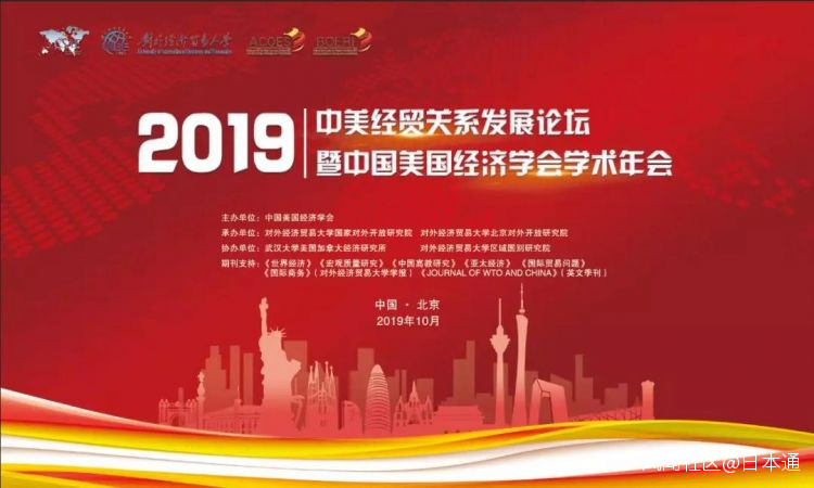 2019年10月25日-26日,中美經貿關係發展論壇暨中國美國經濟學會2019年學術年會在對外經濟貿易大學召開。此次大會由中國美國經濟學會主辦,對外經濟貿易大學國家對外開放研究院、對外經濟貿易大學北京對外開放研究院承辦,武漢大學美國加拿大經濟研究所、對外經濟貿易大學區域國別研究院協辦。