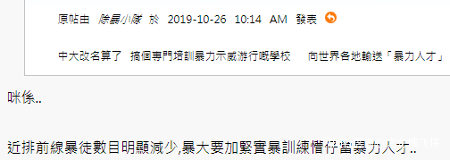 有網友諷刺,“中大改名算了,搞個專門培訓暴力示威遊行的學校,向世界各地輸送‘暴力人才’。”