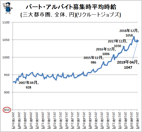 Recruit Jobs的“2019年9月度打工兼職招聘時平均時薪調查”顯示,三大都市圈的便利店職員的平均時薪為989日元(摺合人民幣64元)。比7年前2012年9月的873日元(摺合人民幣56元)增長了13%。