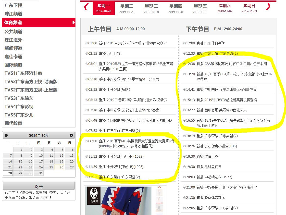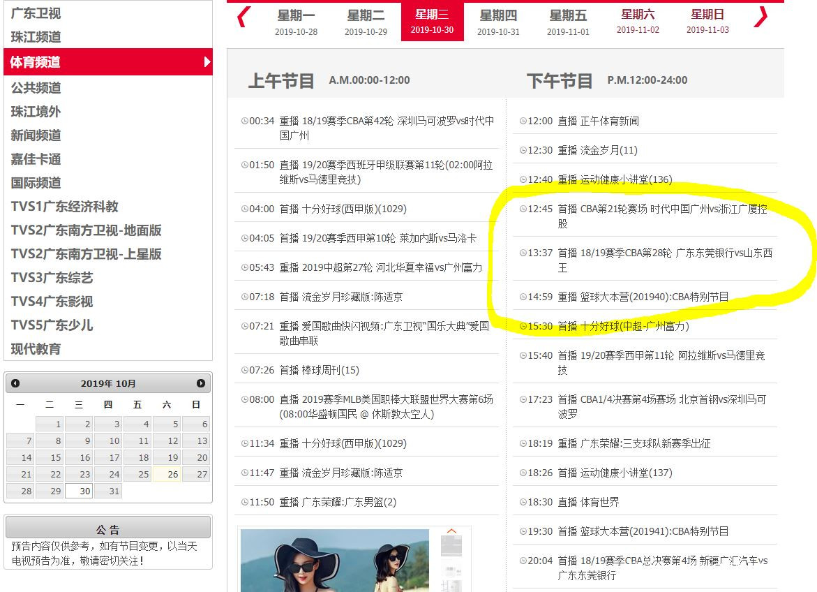 答案是籃球板塊主角換成了我們的廣東子弟兵——廣東男籃,昔日NBA霸佔的時段在CBA新賽季正式開打以前,也是“炒冷飯”為主。其它時段播的是中超(廣州富力)、中甲(梅州客家)還有西甲(本賽季只有廣體獨播,大部分比賽主角是武磊所在的西班牙人)比賽。
