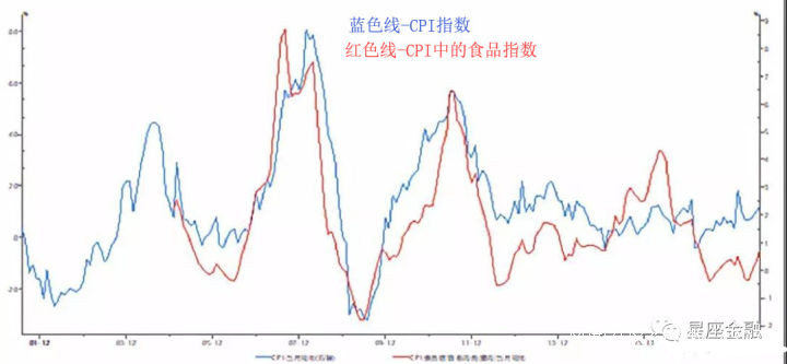 上圖是過去十幾年,CPI指數和食品指數的走勢對比圖。