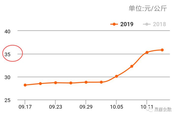 但國慶之後,豬肉價格馬上又飛昇了一波,目前達到36元/公斤的價格。