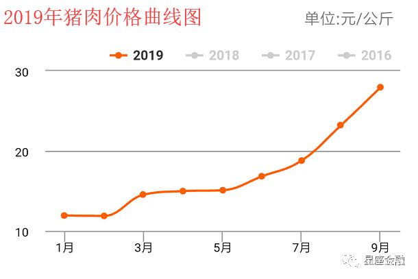 如圖可見,豬肉價格在今年從1月份的12塊錢,直接一路飆漲到9月份的28塊錢。