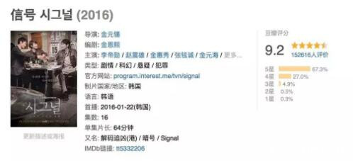 《時空通話》韓版《信號》不僅收視火爆,還獲得了2016百想藝術大賞最佳電視劇、最佳劇本、最佳女主角三項大獎。甚至一度被評價為是“韓劇和韓國文化的野心。”