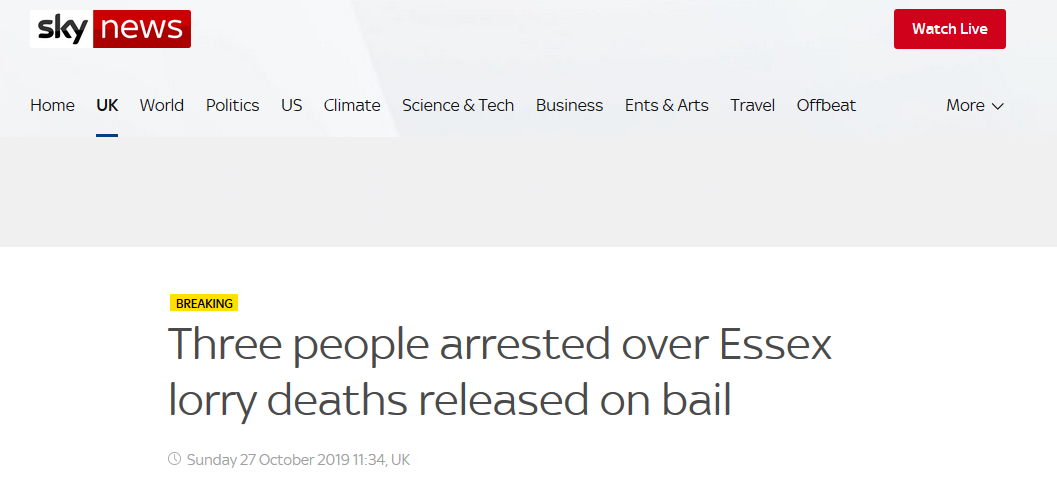 英媒:因“死亡貨車”39屍案被捕的3人已獲保釋_風聞