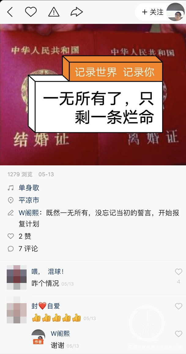 上游新聞記者發現,從今年5月起,陳建鋒先後在其社交媒體平台發佈信息,其中提到了“感情失落”、“報復計劃”等字眼。