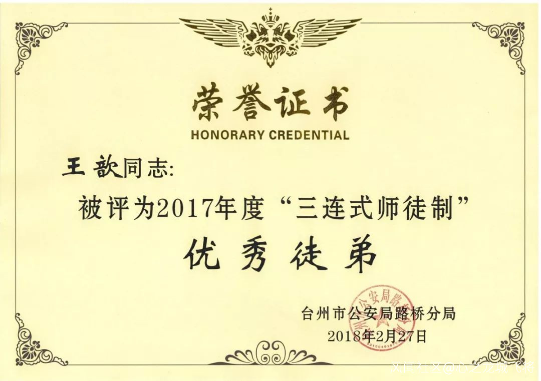 金清派出所副所長王宇是王歆的師父。他告訴記者,王歆聯繫的上塘村是全鎮重點村居,外來務工人員多、出租房屋多,年刑事發案90多起,是一塊難啃的“骨頭”,但是他發揮細緻、耐心的優點,在做羣眾基礎工作上下功夫,執法辦案几乎挑不出毛病,曾被分局評為2017年度“三連式師徒制”優秀徒弟,在新民警中並不多見。
