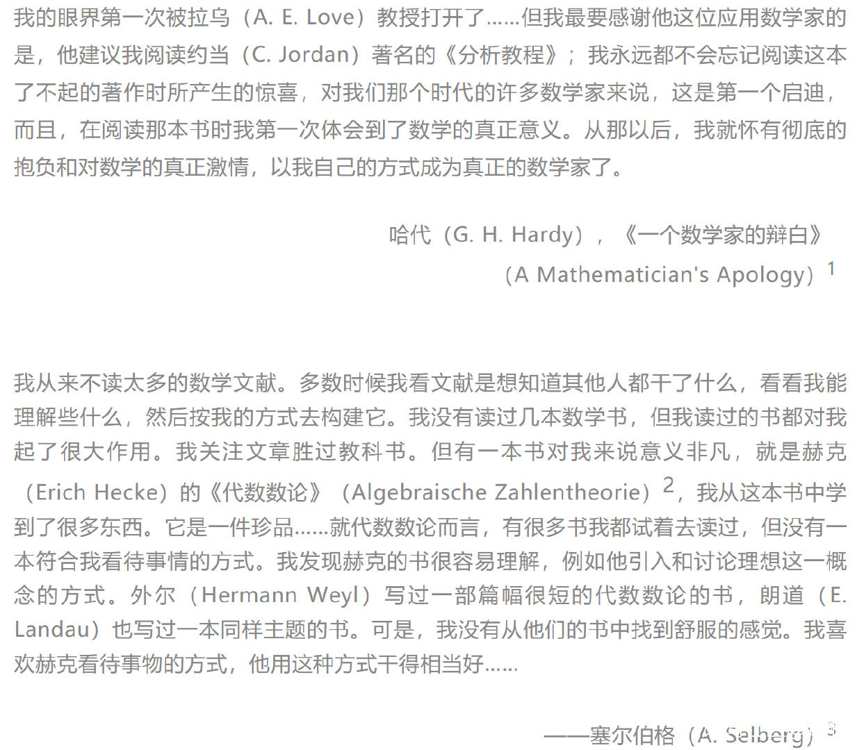 瞭解哈代 6 就是了解一位對於自身能力有充分認識的數學家,同時他把你作為一個自然的平等對象。希望這本書能帶給你它曾經帶給我那般多的愉悦。