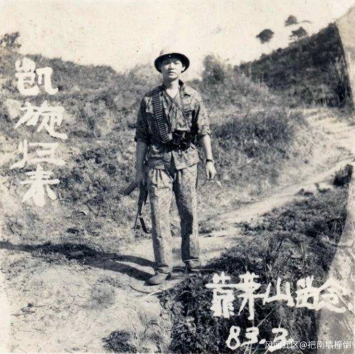 廣西軍區133師偵察連對當面越軍靠茅山陣地進行偵察破襲後回撤。圖為身着迷彩,頭戴越軍制式涼盔的行動分隊戰士。