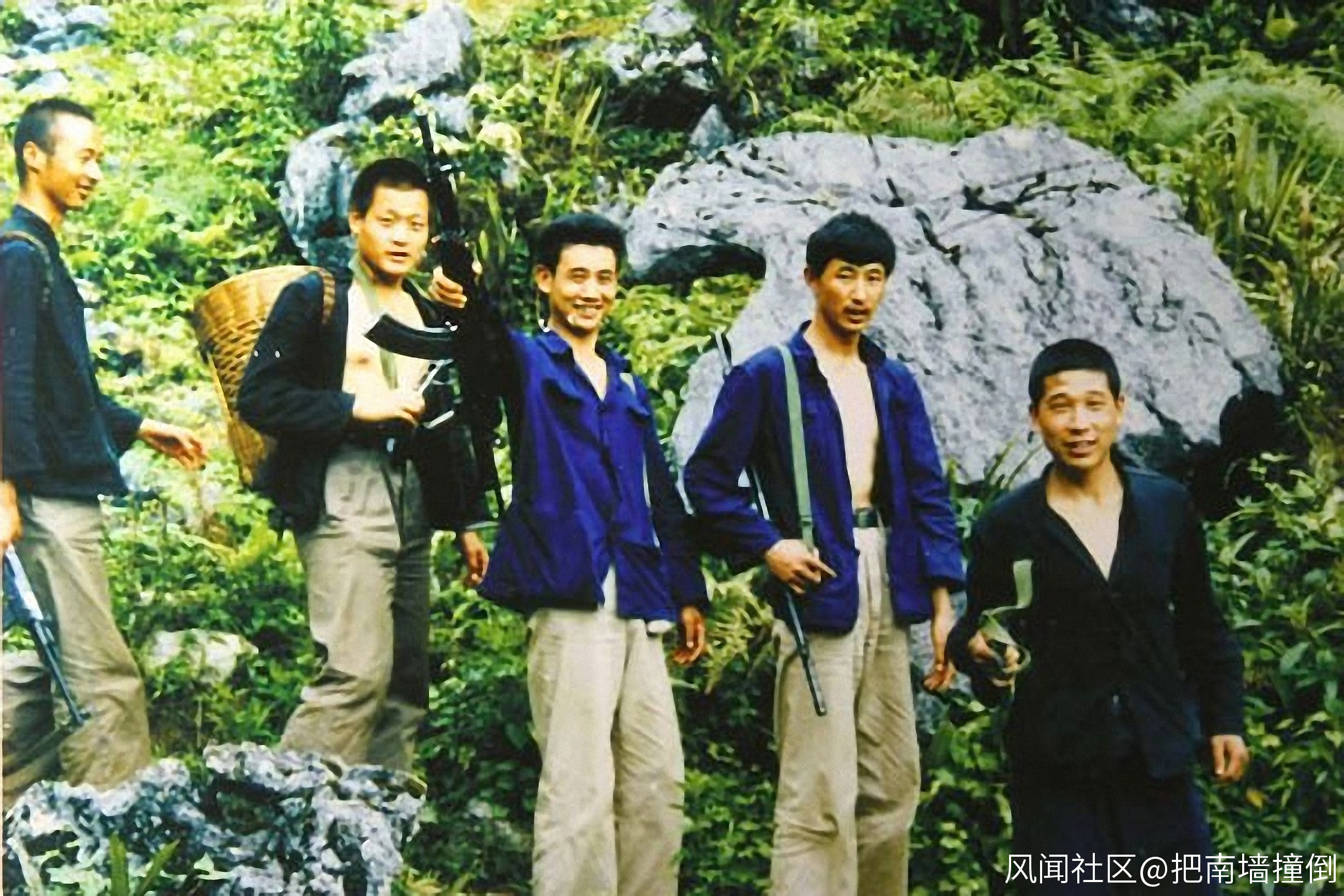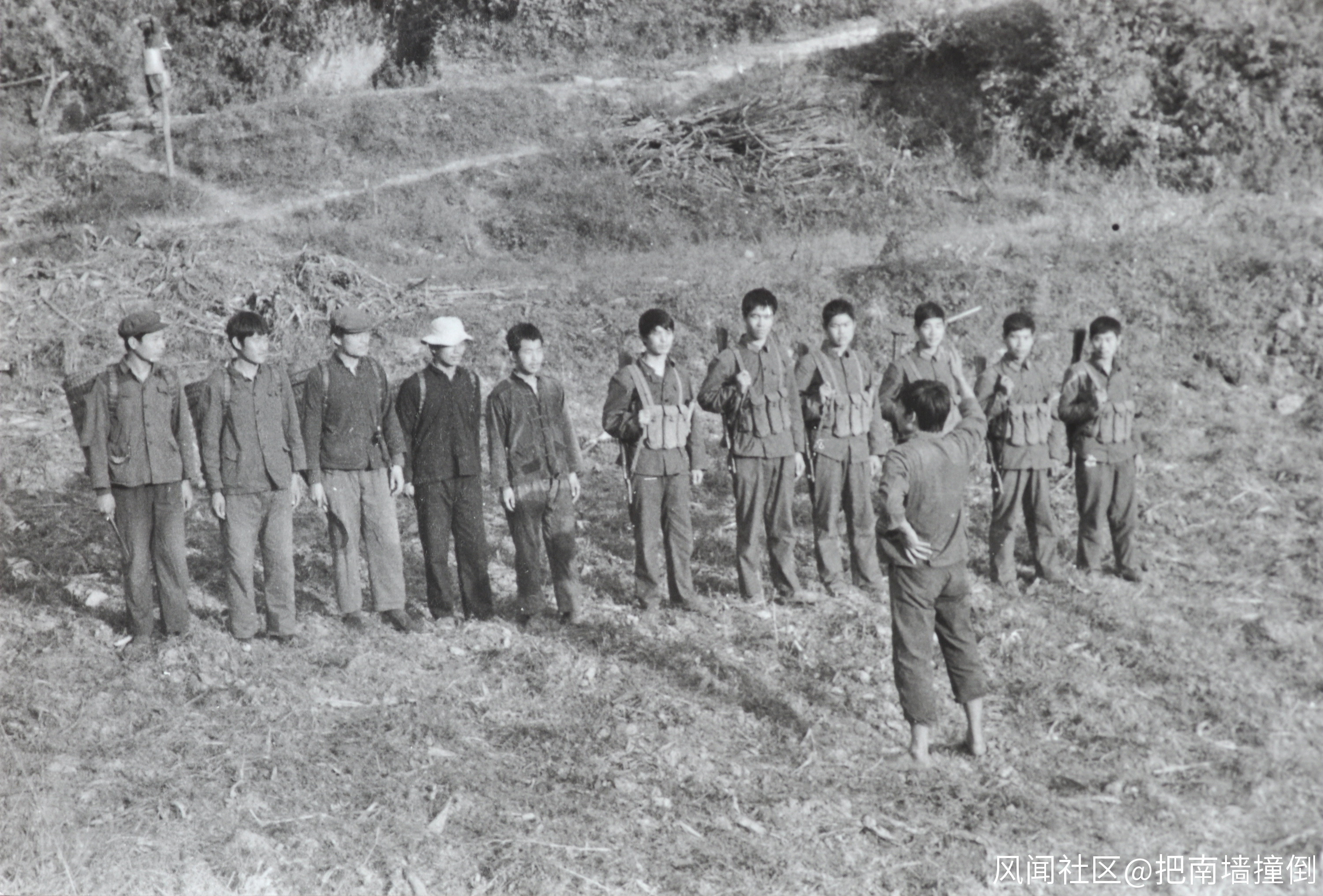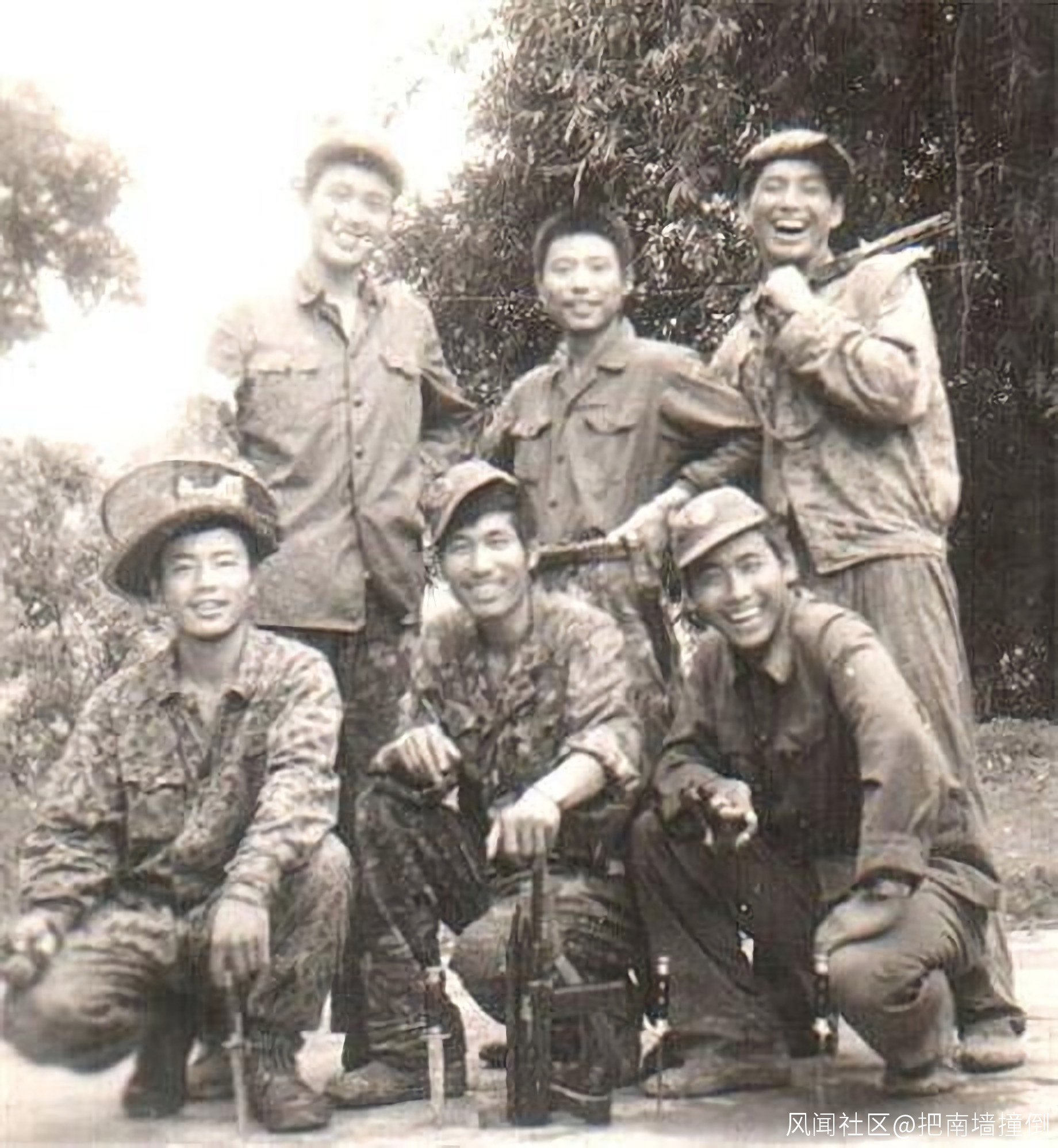 第9偵察大隊偵察3連3班與連指揮員(後排左三、四)合影。注意這些戰士的穿着,均為上世紀80年代西南地區典型的農村居民穿着。