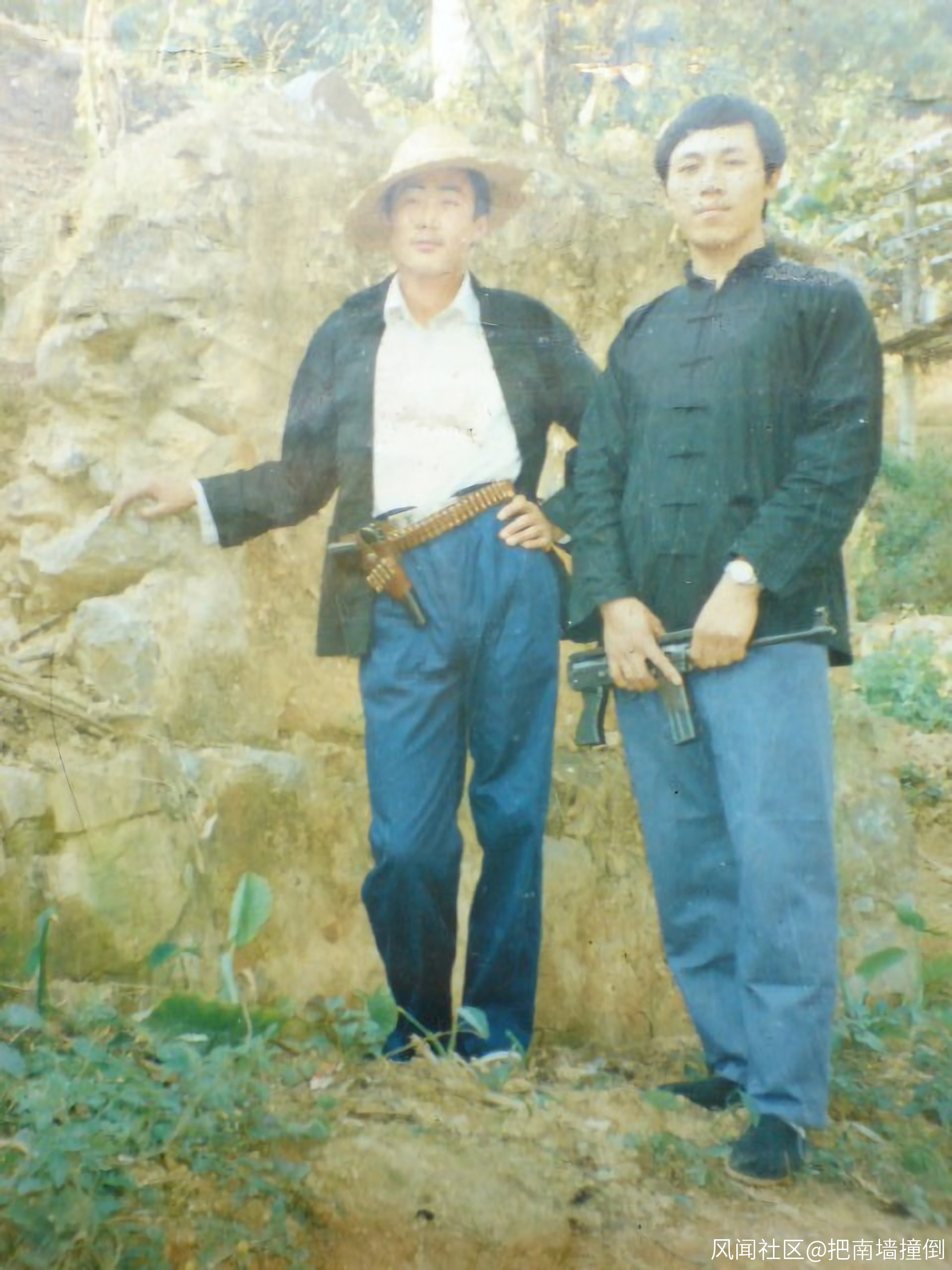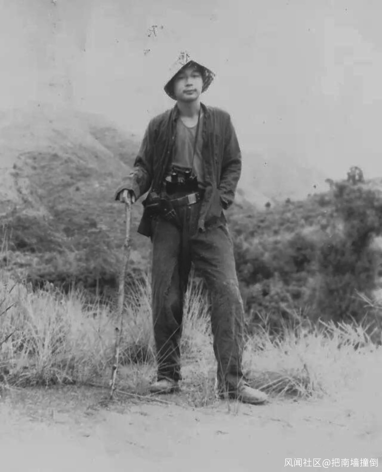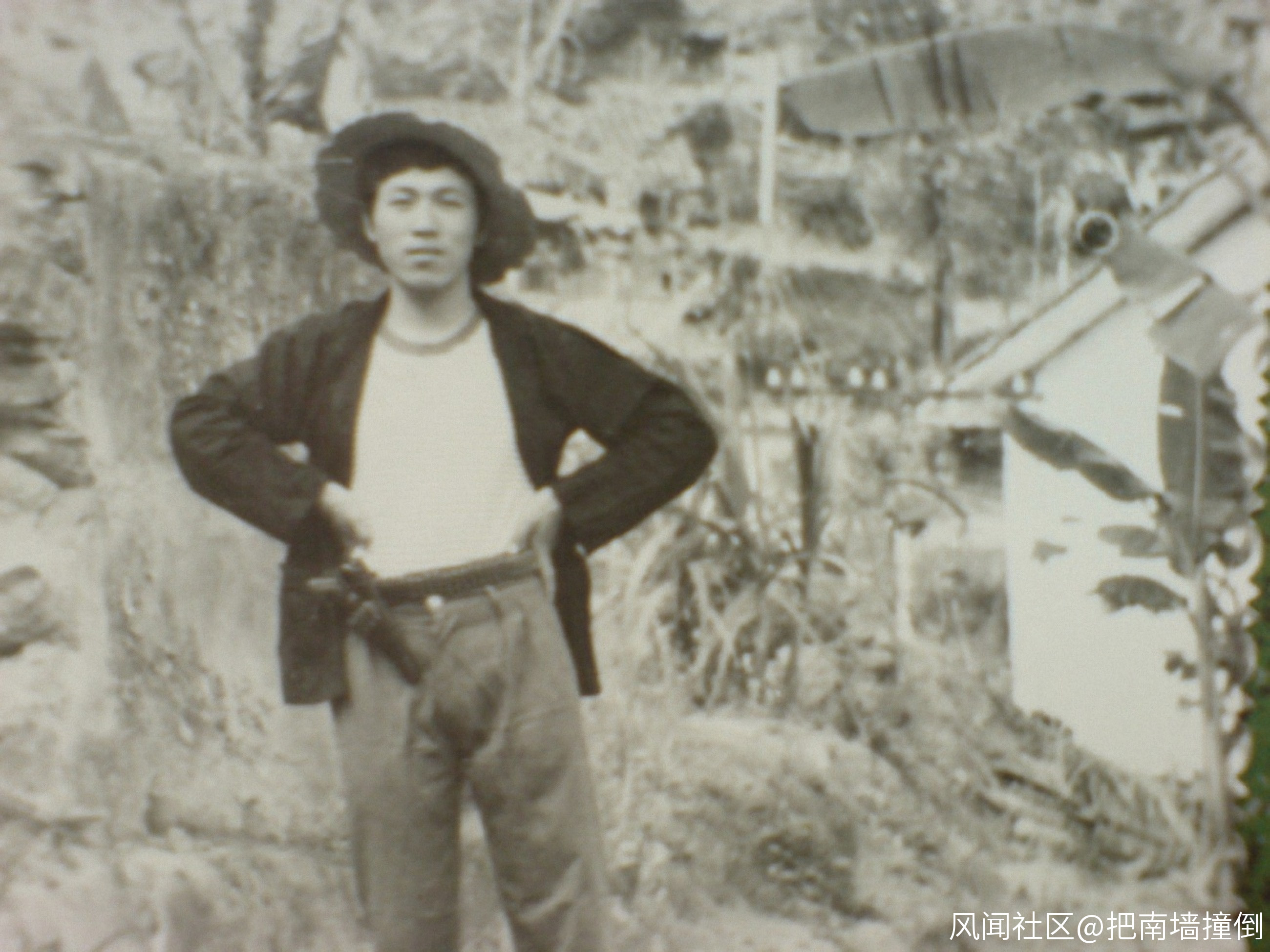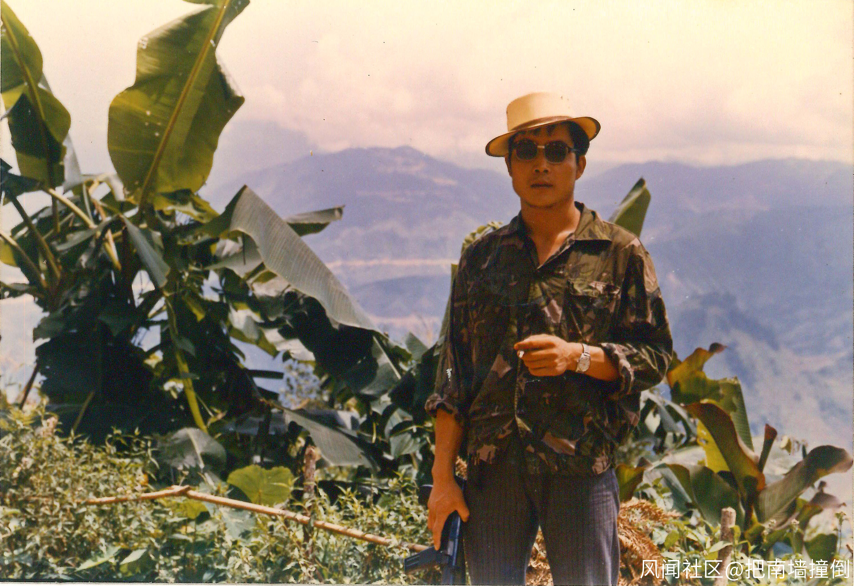 第6偵察大隊谷底坪駐地。一名偵察兵身着便裝,手持79輕衝。注意其褲子,是當時比較流行的豎條紋的確良喇叭褲。大五葉迷彩上衣是為了拍照臨時穿上的。