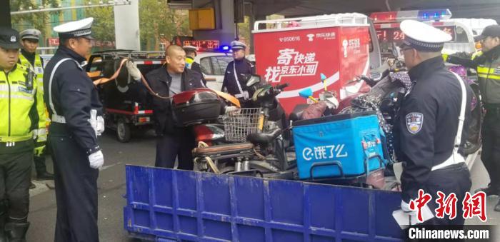 28日上午,中新網記者跟隨哈爾濱市交警上道,集中開展對快遞、外賣行業車輛整治。