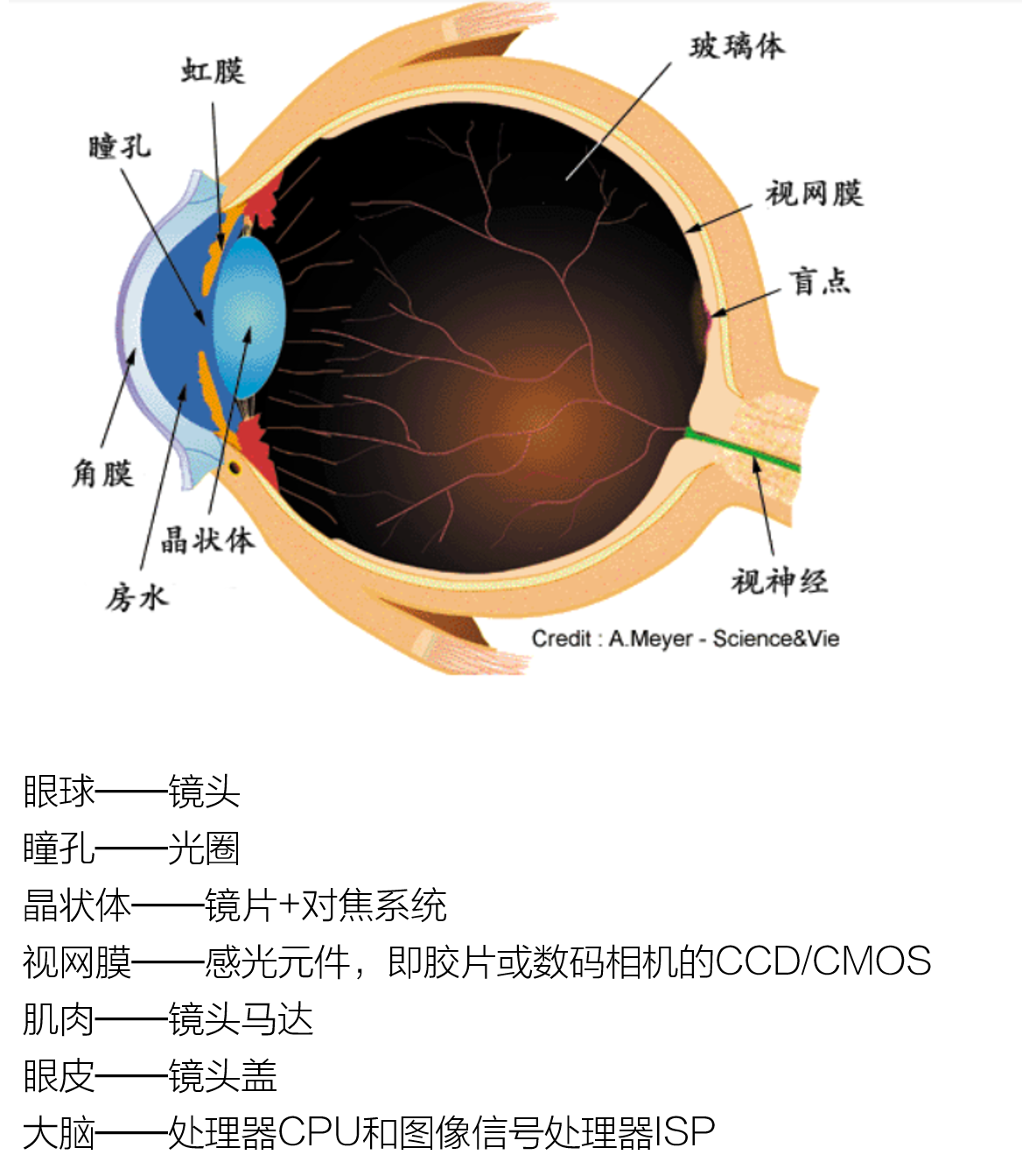 4)肌肉相當於鏡頭馬達,眼皮相當於鏡頭蓋。