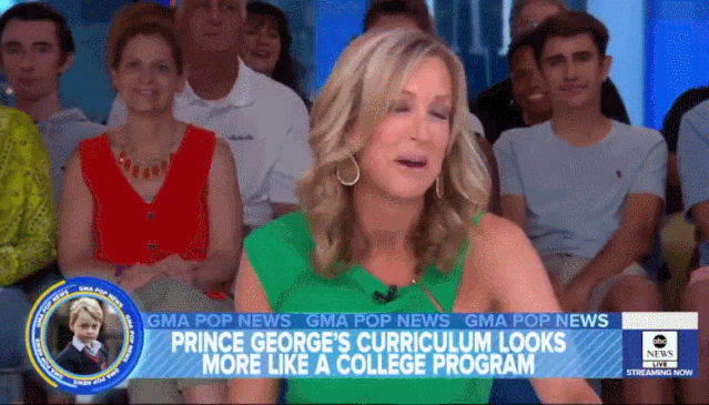 節目上,主持人Lara Spencer在向觀眾播報小王子的課程表時看到他正在學芭蕾,一時竟忍不住笑出聲來,周圍的觀眾也附和着笑作一團。