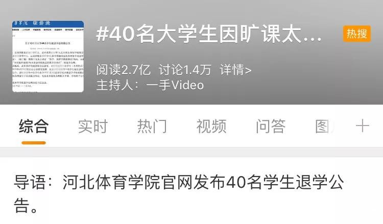 10月25日,一條「40名大學生因曠課太多被退學」的話題登上微博熱搜,引起了網友的熱議。曠課就被退學,這又是怎麼回事呢?