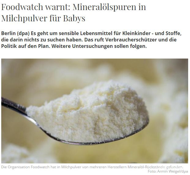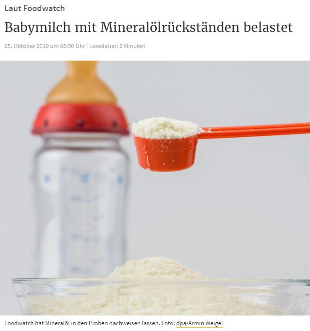 然而,《明鏡》週刊今日報道的這則消息足以讓不少媽媽感到心涼。日前,德國消費者權益保護組織Foodwatch對目前德國市面上出售的不同品牌的嬰幼兒奶粉進行檢驗。根據檢測報告顯示,其中四分之三的奶粉產品含有潛在致癌物質——礦物油芳香烴(MOAH)!
