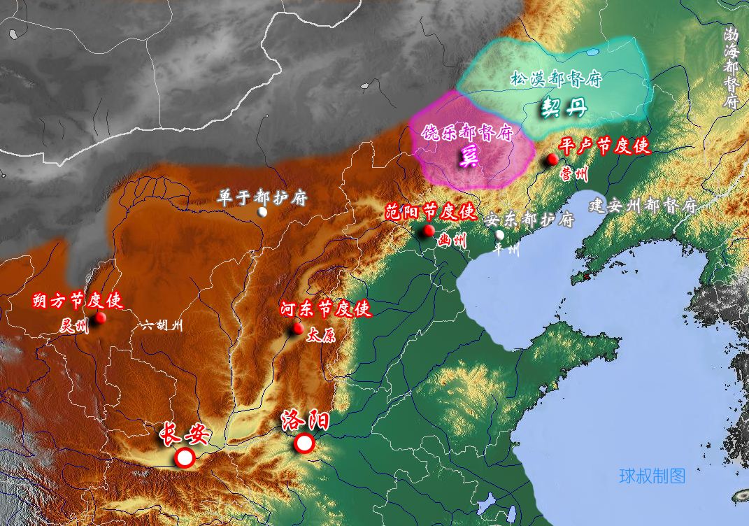 北方的蒙古高原上,回紇取代後突厥成為蒙古高原的新主人;西域天山以北的怛羅斯,高仙芝所率領的唐軍敗於大食;西南地區的洱海湖畔,立國後的南詔擊敗唐軍,轉而與青藏高原上的吐蕃結盟;而在帝國的東北部,契丹與奚則時叛時附,嚴重的威脅着唐朝在遼東地區的統治。