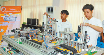 泰國學生正在操作自動化生產線教學設備。人民日報記者 張志文 攝