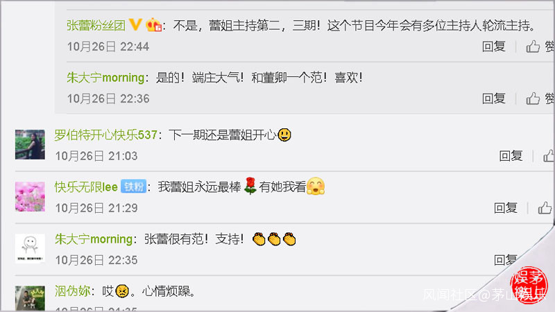 微博截圖不過,據張蕾粉絲團官博透露,接下來的節目,也不會是張蕾主持,她也只是主持第二、三期,後面還會有其它主持人,至於還會有哪些人來主持,現在還不得而知,不過大概率應該不會是謝娜了,因為如果準備讓謝娜主持多期的話,那就應該是連續的。目測可能還會是央視的主持人,或者是其它地方台的知名主持人,畢竟其它地方台也有不少比較優秀的、比謝娜水平高的綜藝節目主持人嘛。