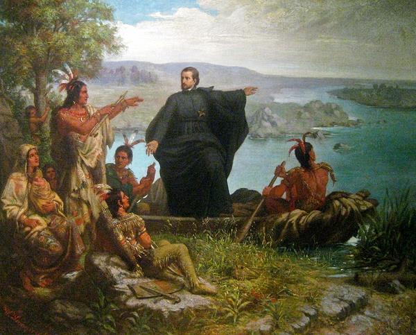 描繪馬凱特在向印第安人傳教的油畫。圖片來源:馬凱特大學