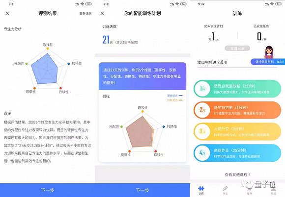 之後,系統會給出一個“專注力”分析報告,並給出“訓練計劃”,然後就進入了今日訓練課程: