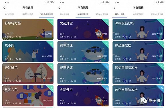 除了這些被加入訓練計劃的課程之外,還有“腦放鬆訓練”、“神經反饋訓練”、“專注力維度訓練”三個類型的課程: