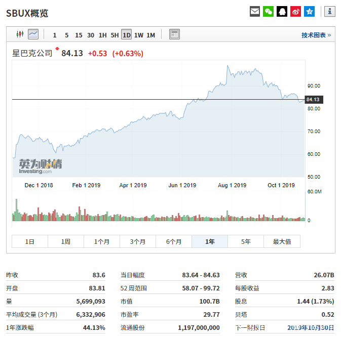 星巴克股價走勢,來源:英為財情Investing.com促使公司下調預期的重要原因是有效税率,因為2019年星巴克獲得的税收優惠是一次性的。此外,星巴克還決定將2020年的20億美元股票回購提前至2019財年。