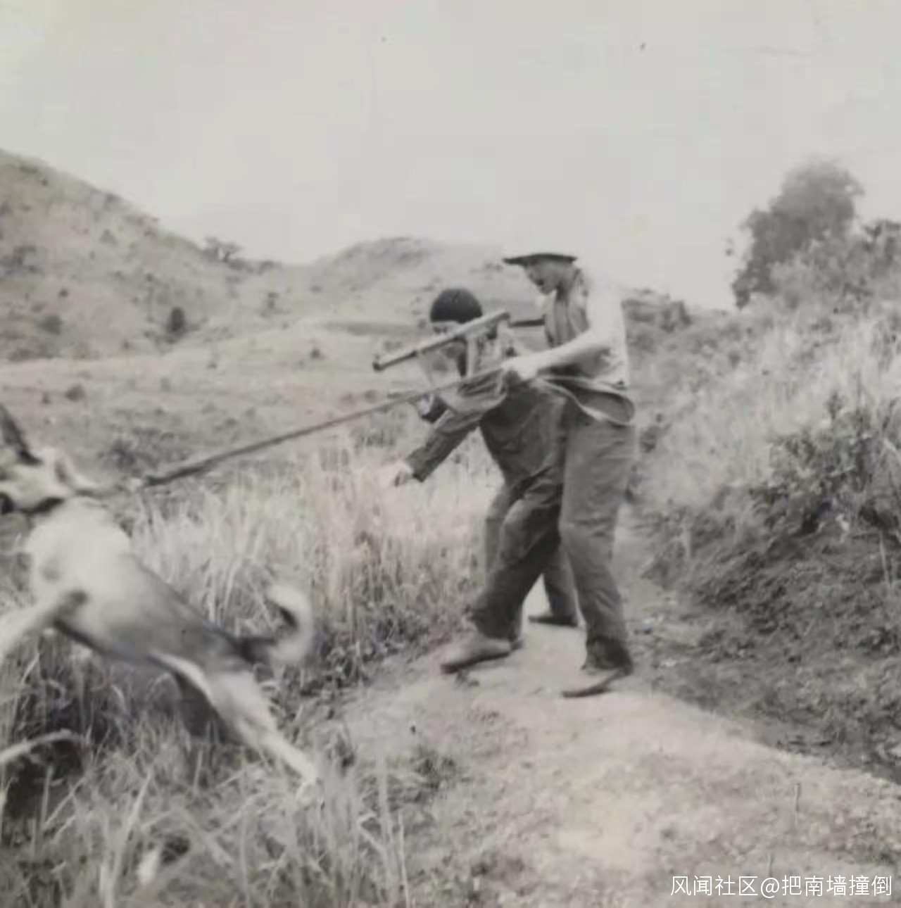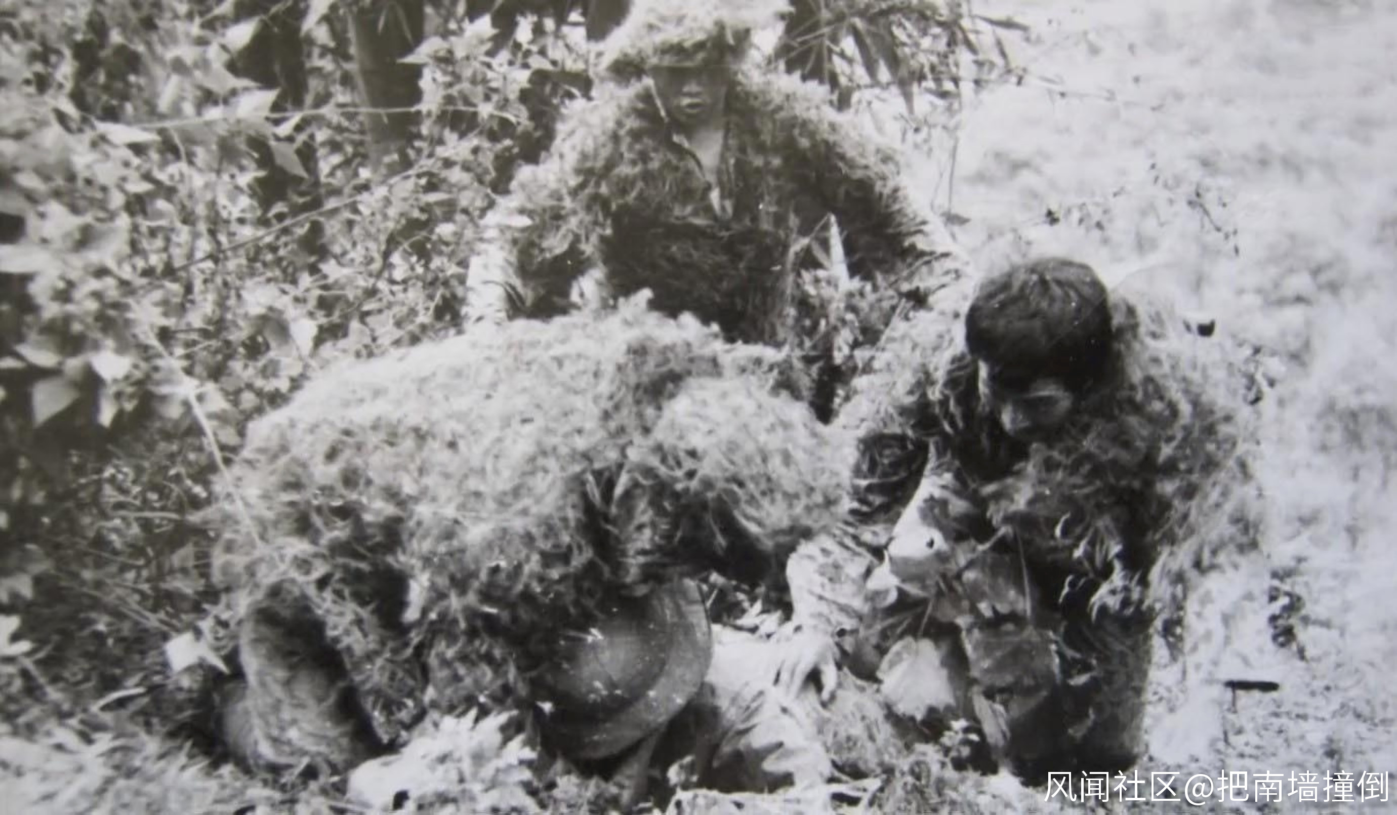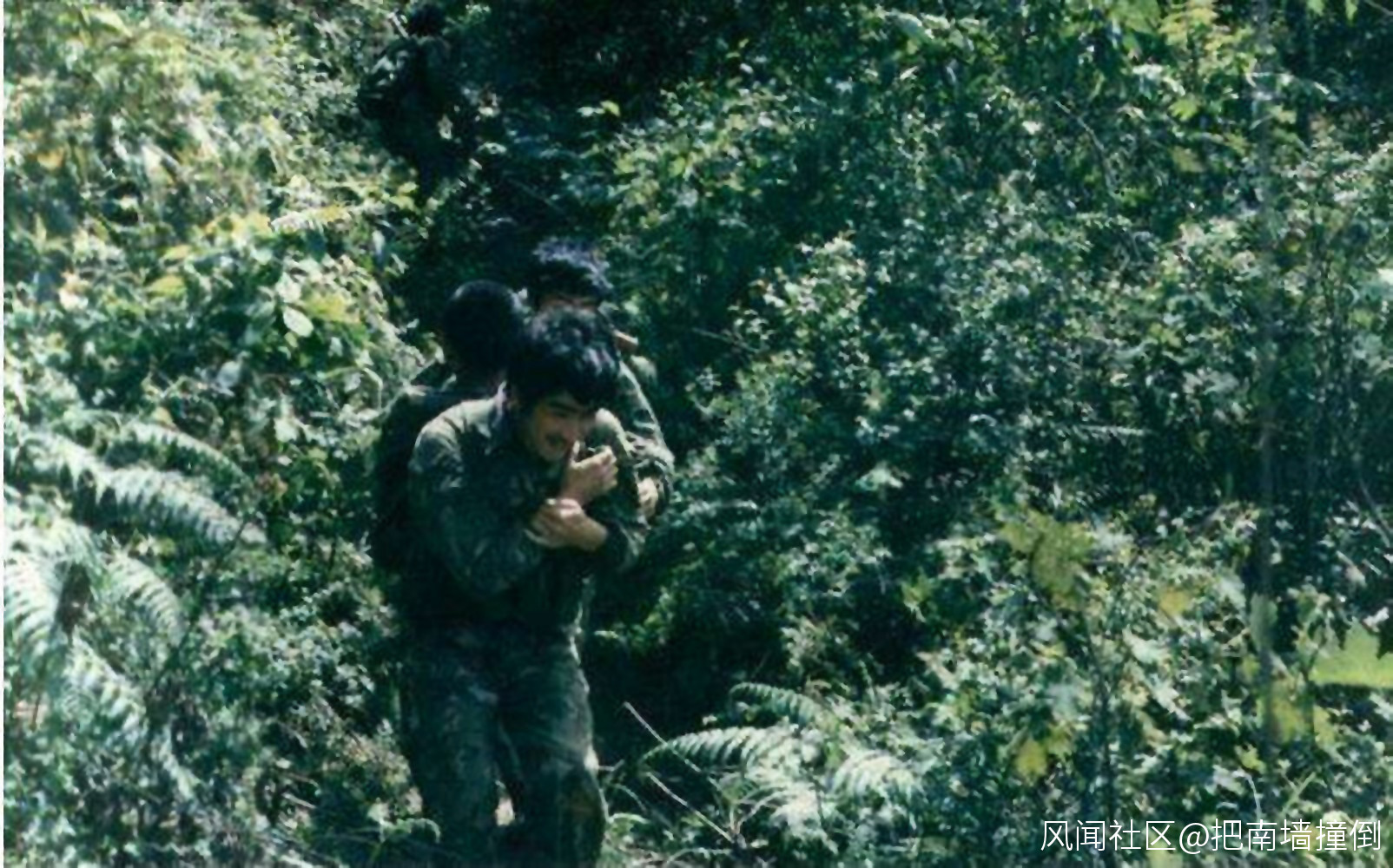 1981年3月12日,廣西軍區41軍121師偵察分隊攜帶軍犬搜捕並發現躲藏的越軍特工瞬間
