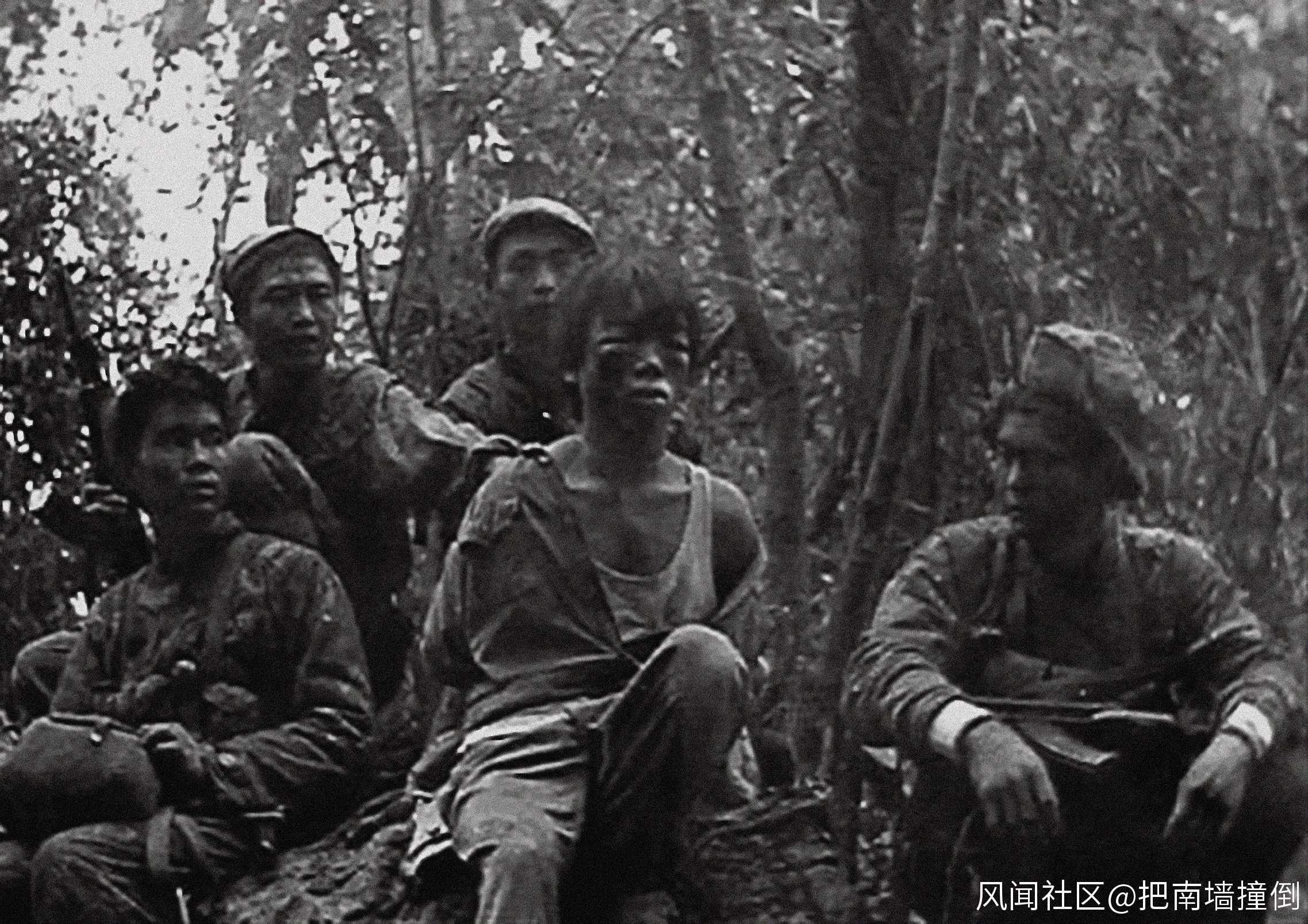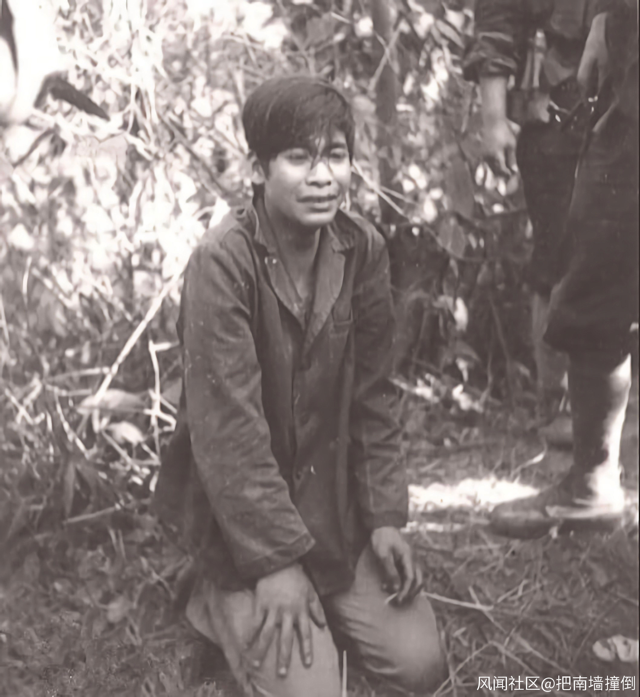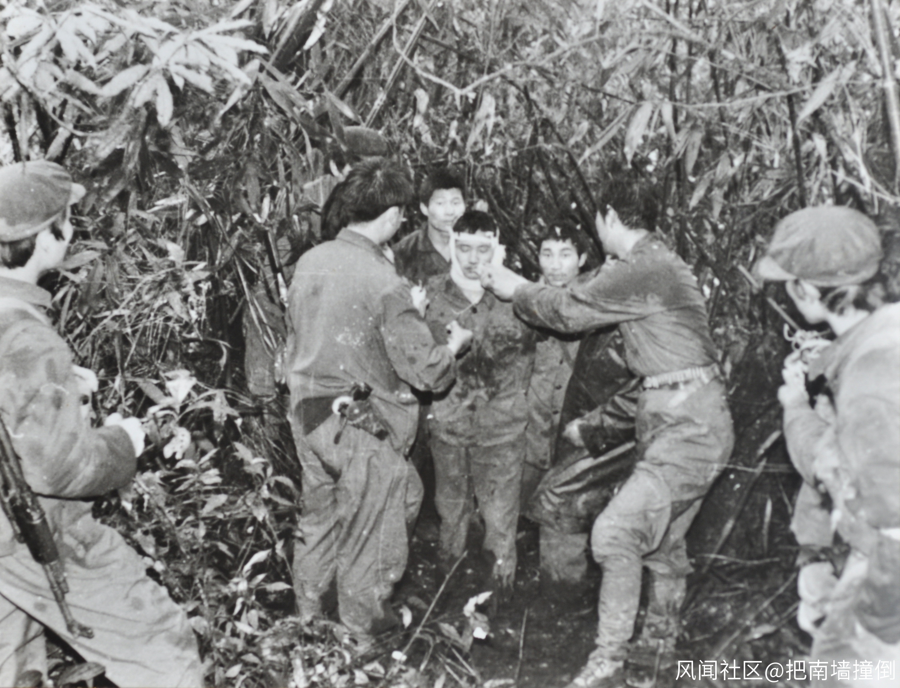1979年2月22日,41軍123師367團4連在越南高平省茶嶺縣那民社外圍310高地抓獲越軍346師的一名下士文書範國權。圖為我軍對該俘進行戰地突審。