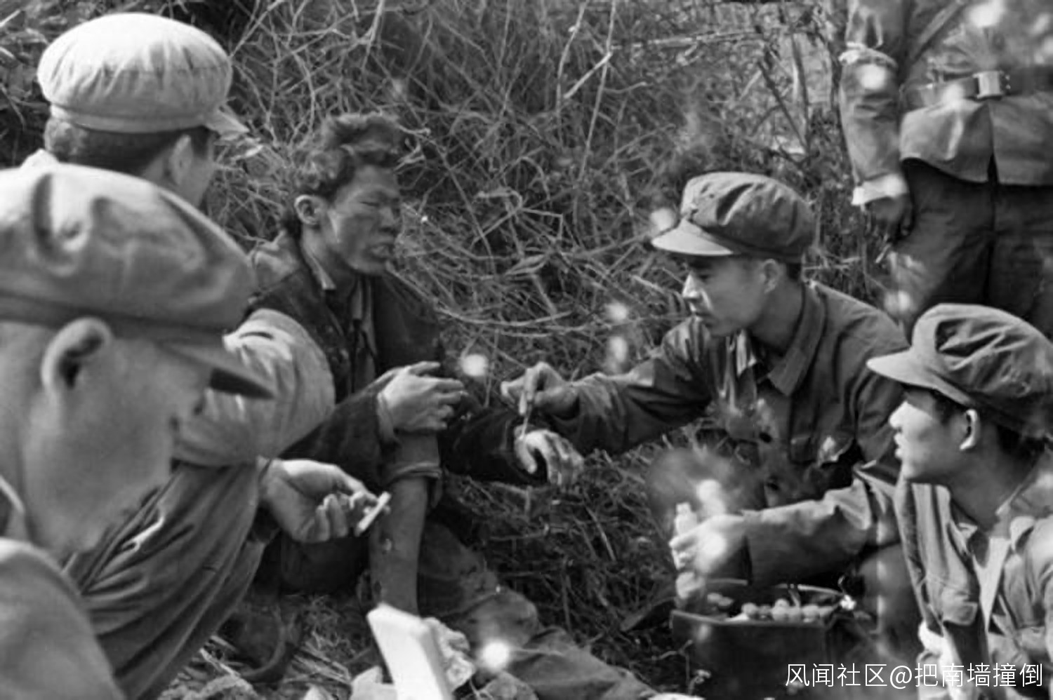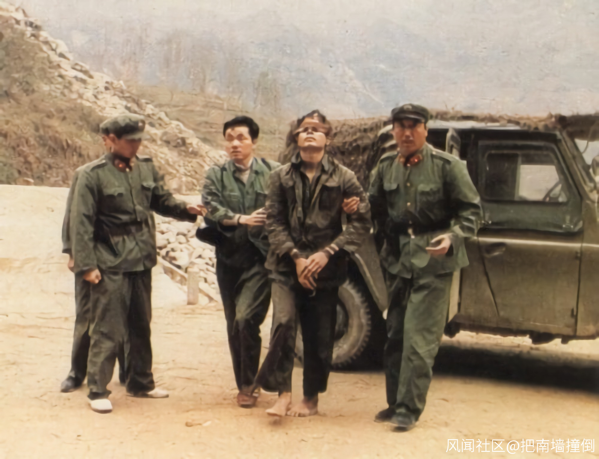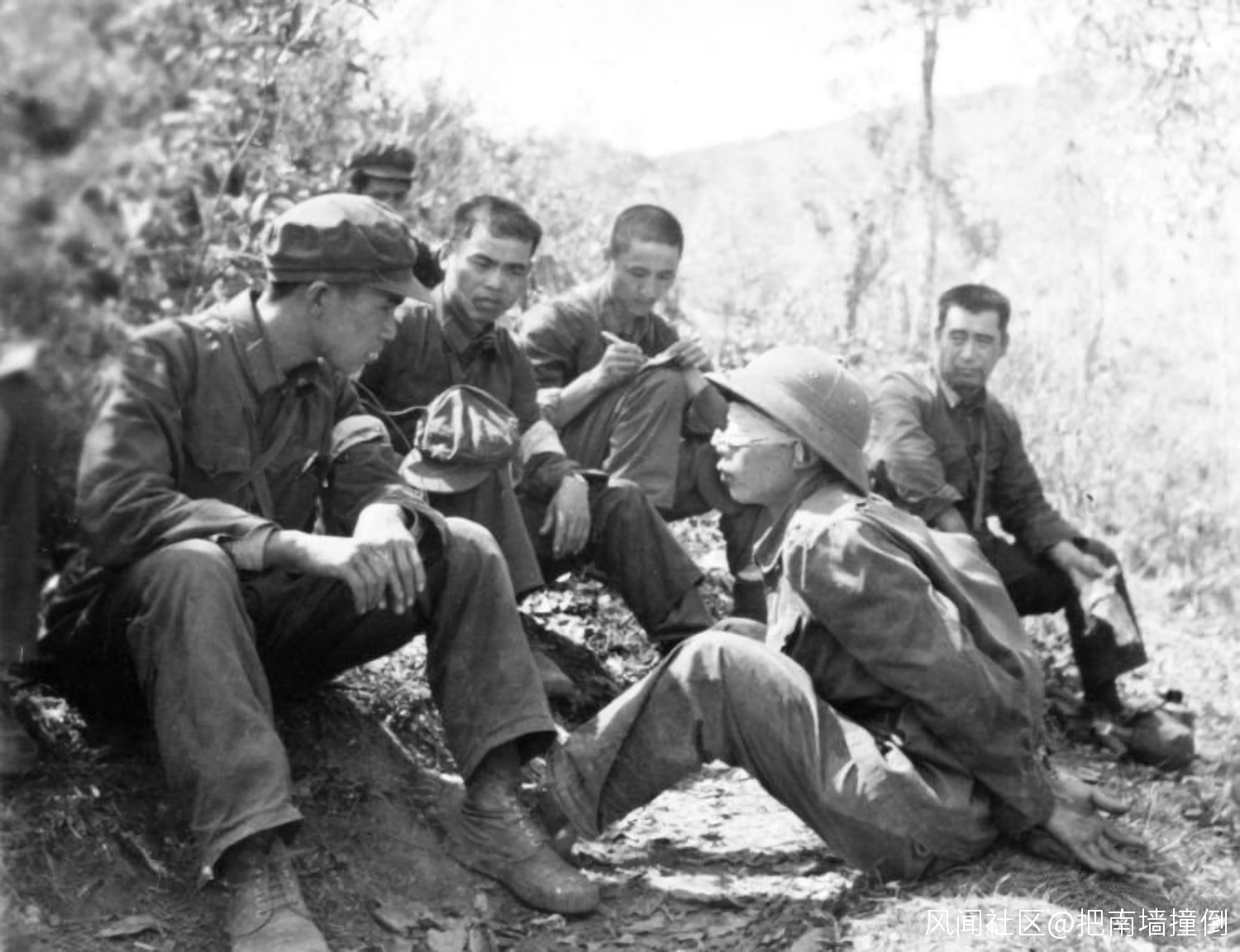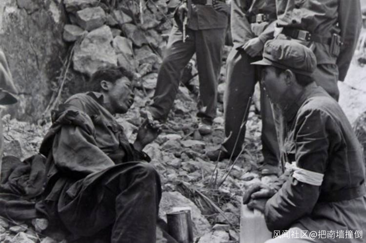1979年2月22日,41軍123師367團4連在越南高平省茶嶺縣那民社外圍310高地抓獲越軍346師的一名下士文書範國權。圖為我軍對該俘進行戰地突審。