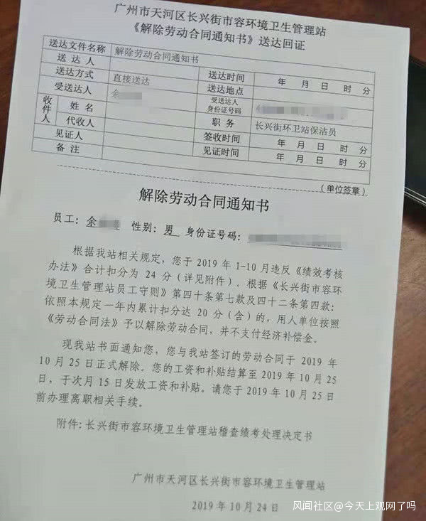 近日,網曝廣州天河區一名余姓環衞工人猝死,死前一天遭所供職的環衞站罰款和解僱。知情人稱,10月24日,餘志平(化名)被長興街道環衞站質監員發現在工作時間違反勞動紀律,從而對其進行扣分處罰。因其今年1-10月扣分分數超過20分,為此,環衞站決定無條件開除餘志平。