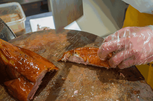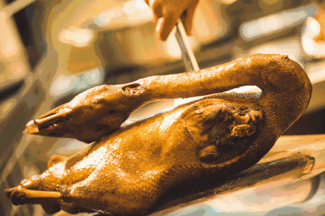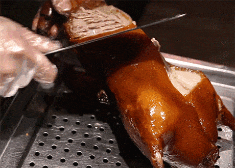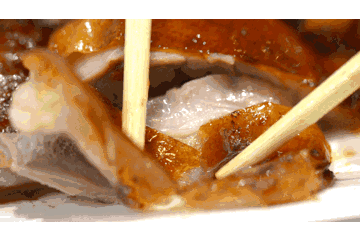 但外觀只是誘騙食客冒險下口的美食陷阱,對習慣燒鵝水嫩口感的南方人來説,皮乾肉糙的北京烤鴨**,唯一優點就是能磨去食道死皮**,狠辣一點的老饕甚至提問:
