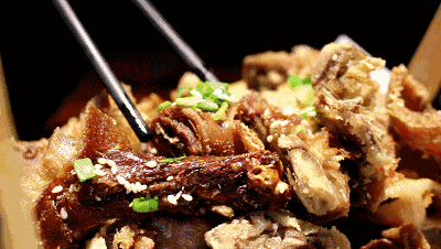 乾煸鴨架則更爽辣重口一些,過滾油後鴨肉配上椒鹽,那股焦香沖鼻的肉味,可不是牛逼格拉斯咋地: