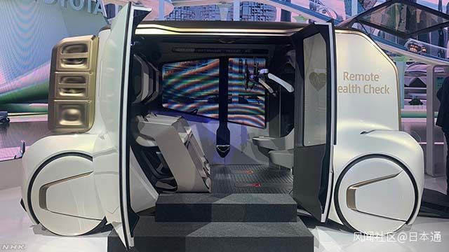 取而代之的,放置了一款名為“Mobility”的車,這款也是豐田汽車在研發無人駕駛的成果車。本次展會,Mobility展示了駕駛情況下分析乘客健康狀態的功能。車內配置攝像頭,捕捉乘客表情進行分析,同時支持語音溝通與自動更改路線(去醫院等)等功能。