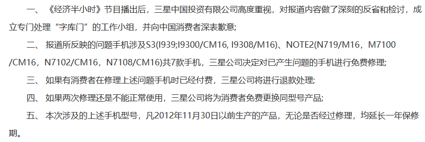 那因為“字庫”壞了的手機,在國外,三星是怎麼處理的呢?