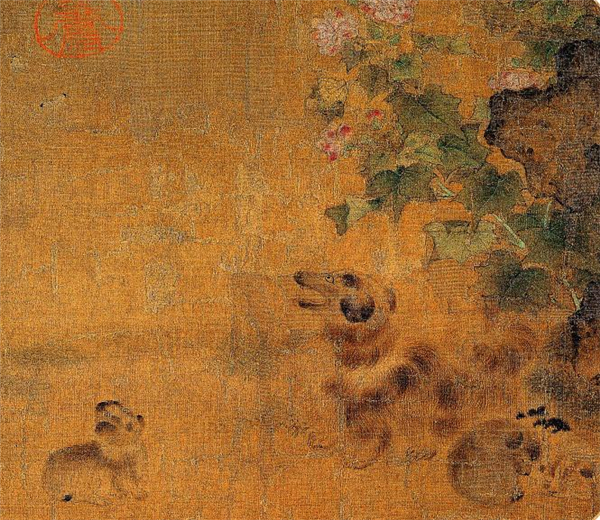 宋代佚名《秋庭乳犬圖》