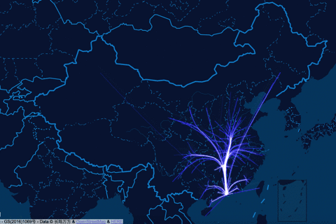 春節期間廣州流動人口遷出圖(百度地圖慧眼)