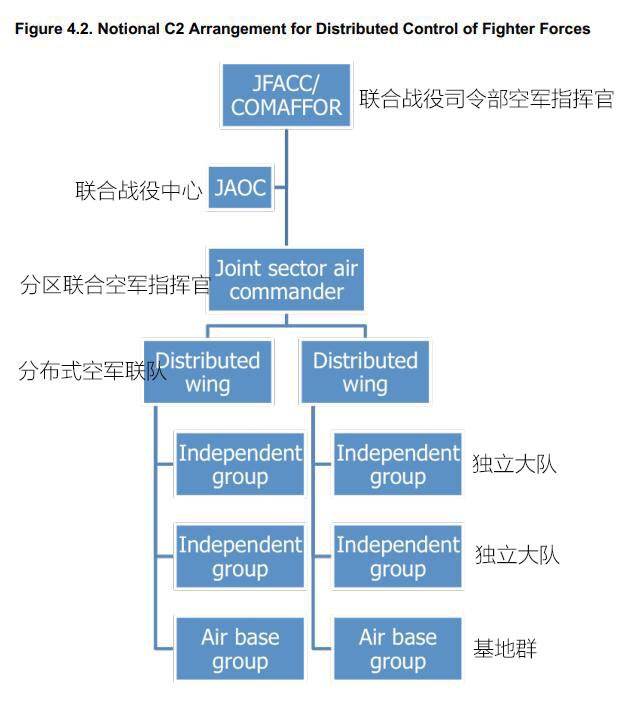 今天,太平洋空軍正在建立次級指揮控制中心,可能為航空隊(NAF)或聯隊級(對應軍、師級)。在戰區聯合指揮部的通信被幹擾的情況下,這些節點將有能力繼續指揮協同前線單位。