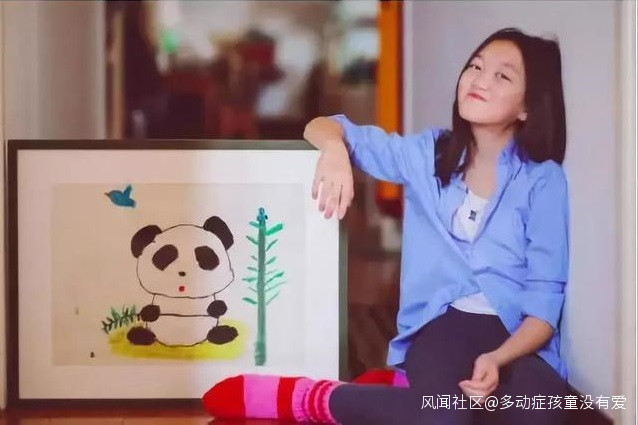 我們也可以看到,李嫣的畫作其實是比較簡單的,一隻大熊貓手裏拿着竹子,而它的身邊也有一顆竹子,天上則有一隻藍色的鳥。