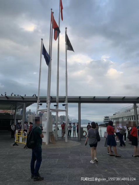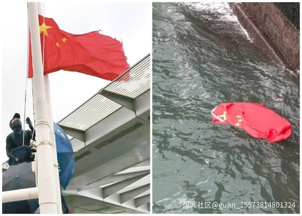 8月3日下午,非法集會的示威者來到尖沙咀海港城外,撤下國旗,丟入大海。