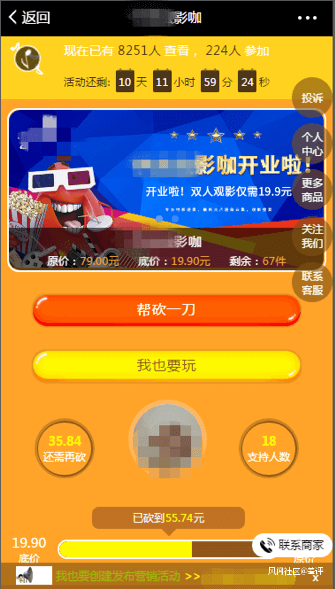 例如砍價活動:你一刀我一刀,多年不見的老同學聯繫你竟然要你給他來一刀,有的人甚至還丟到羣裏求大家亂刀砍死他。