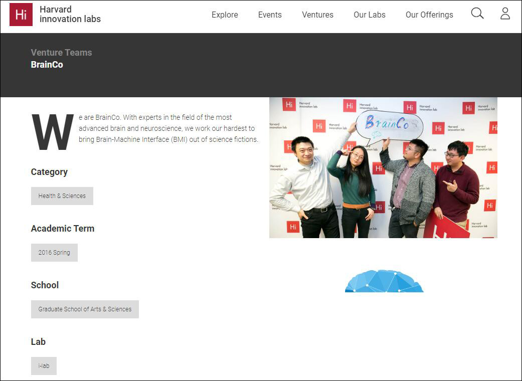 韓璧丞在大學期間就開始創業,BrainCo正是他在哈佛大學讀博期間成立的公司。BrainCo同時也是掛在哈佛大學創新實驗室下面的一隻創業團隊。雖然掛着哈佛的名,但其實和哈佛的關係不大,因為這只是一個哈佛為學生提供的創業活動,很多高校都有。
