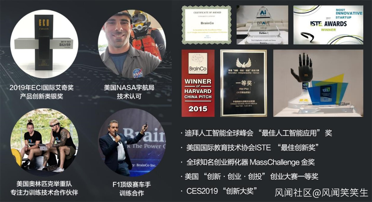 BrainCo拿到的這個ECI國際艾奇獎產品創新類銀獎倒是能查到,與其一同獲獎的還有平安科技、360、阿里這些知名公司。除了產品創新這個獎,艾奇獎還頒發營銷創新、模式創新等獎項。獲得這些獎的企業,絕大多數來自中國。