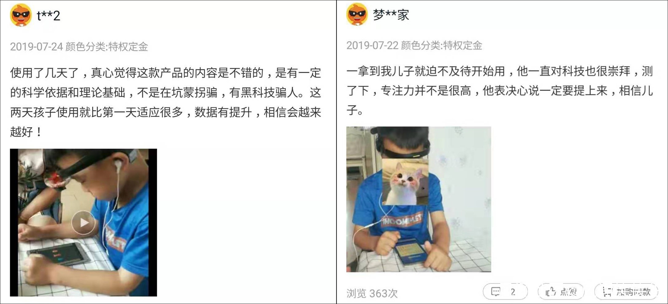 BrainCo這款產品在他們自己的天貓旗艦店中也是獲得了清一色的好評。不過下面這個家庭也太壕了,給孩子一口氣買了兩個頭環,而且還都發了評價。你倆是同一個兒子?