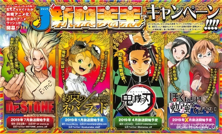《鬼滅之刃》對細膩情感的刻畫,擁有懸疑冒險設定的《約定的夢幻島》,科學種田流《Dr.Stone石紀元》,以及《我們無法一起學習》的“炒股”,都與傳統王道漫畫形成了反差。由於融入不同類型的元素,“新四天王”在漫畫連載過程中就已經收穫了一定人氣,將這類熱門新作動畫化的操作並不新奇。