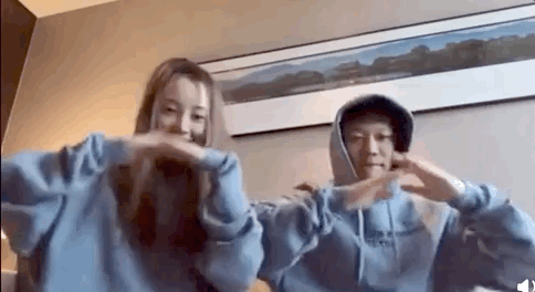 第二個視頻,模仿時下流行的動作,默契地嘴對嘴親親;