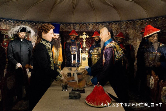 康熙二十七年(1688年)五月二十日,清政府在商討與沙俄談判方針時,索額圖提出:“察鄂羅斯所據尼布楚,本系我茂明安部遊牧之所,雅克薩系我達呼兒總管倍勒兒故墟,原非羅剎所有,亦非兩界隙地也。”“尼布楚、雅克薩、黑龍江上下,及通此江一河一溪皆屬我地,不可棄之於鄂羅斯”。他向康熙皇帝提出建議:如果沙俄能夠承認尼布楚、雅克薩等地區是清朝的領土,就同俄方停戰並簽訂條約。康熙帝同意了索額圖提出的建議,於是就命令索額圖等使臣,前往色冷格與俄方代表談判。但在去往談判地點的路上,因準噶爾部突然發動叛亂,阻斷了道路,無法前進,被迫返回。1689年4月,中俄兩國約定在尼布楚進行談判,中方考慮到當時噶爾丹發動叛亂,希望同沙俄方面儘快停戰,以此來專心對付噶爾丹等反動勢力,因此做出了一定的讓步。不久,索額圖等使臣前往尼布楚,於當年六月到達尼布楚城附近,安營紮寨,準備同俄方使臣進行談判。1689年7月初,中俄兩國代表在尼布楚城郊外開始談判,談判的主要內容是中俄兩國的領土歸屬問題。中方代表認為貝加爾湖附近的所有領土,自古以來就是中國的領土,因為貝加爾湖是喀爾喀蒙古的領土,而喀爾喀蒙古是中國的藩屬。戈洛文強詞奪理,聲稱貝加爾湖附近的領土自古以來就屬於沙俄。索額圖據理力爭,雙方僵持不下,索額圖見戈洛文強要以黑龍江為界,提出以額爾古納為界,但戈洛文仍然不同意。索額圖為了儘快達成和解,再一次做出了讓步,先是提議以綽爾納河為界,戈洛文不同意。後來索額圖又提出北面以格爾必齊河為界,南面以額爾古納河為界,雙方才勉強達成一致意見。最後,雙方在談及喀爾喀蒙古的歸屬問題時,因當時喀爾喀蒙古已經被噶爾丹反動勢力所控制,暫且擱置待議,當時的沙俄政府扶植噶爾丹反動勢力。在此次談判的過程中,沙俄軍隊正與奧斯曼帝國軍隊在黑海附近酣戰,難以在短時間內抽調大量兵力與清軍交戰,而且為了避免雙線作戰,最終答應了索額圖的提議。1689年9月7日,中俄雙方舉行隆重的簽字儀式,索額圖和戈洛文先後在正式條約上簽字、蓋章,然後宣讀誓詞,相互交換條約。這個條約就是最終的《尼布楚議界條約》。為表示慶賀,雙方互贈禮品,還舉行了盛大的宴會。中俄資訊網特稿,作者:房鑰地。