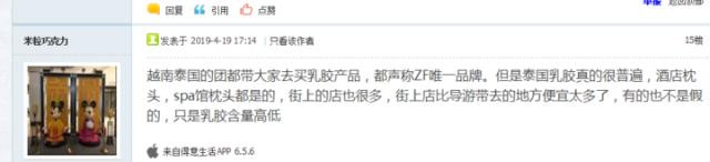 在網上,和胡女士有同樣遭遇的人不在少數。到越南、泰國購買乳膠產品,好像已經變成了跟團遊的一大陷進。“反正我們去購物時,門口停着好多國內旅行團的大巴車。”