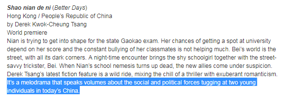 怎麼回事?《少年的你》報名柏林電影節的簡介這樣寫…_風聞
