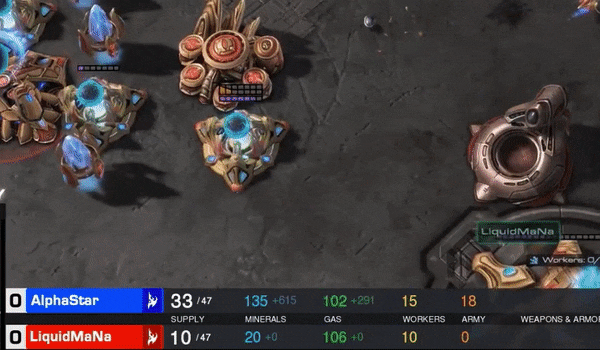 在與星際2職業選手的比賽中,AlphaStar以總比分10-1的成績制霸全場,人類職業選手LiquidMaNa只在它面前堅持了5分36秒,就GG了。